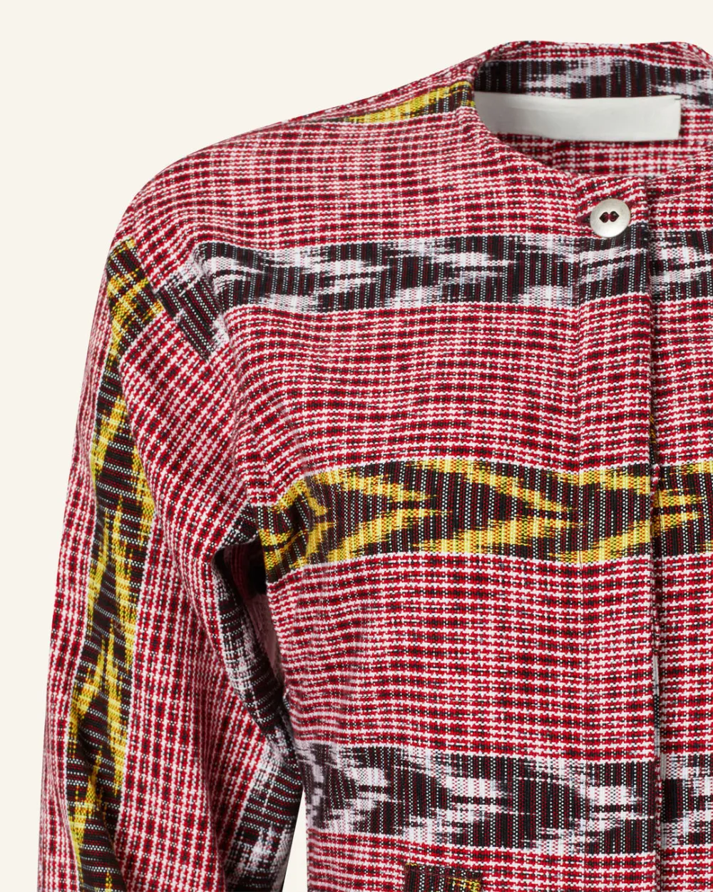 This one-of-a-kind textile was woven by hand. Subtle variations are part of the unique beauty of the garment and a signature of the artisan’s hand.