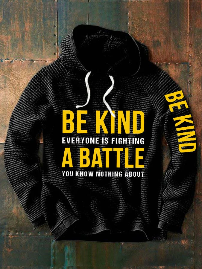 Men's Be Kind Everyone Is Fighting A Battle You Know Nothing About Print Waffle Hoodie