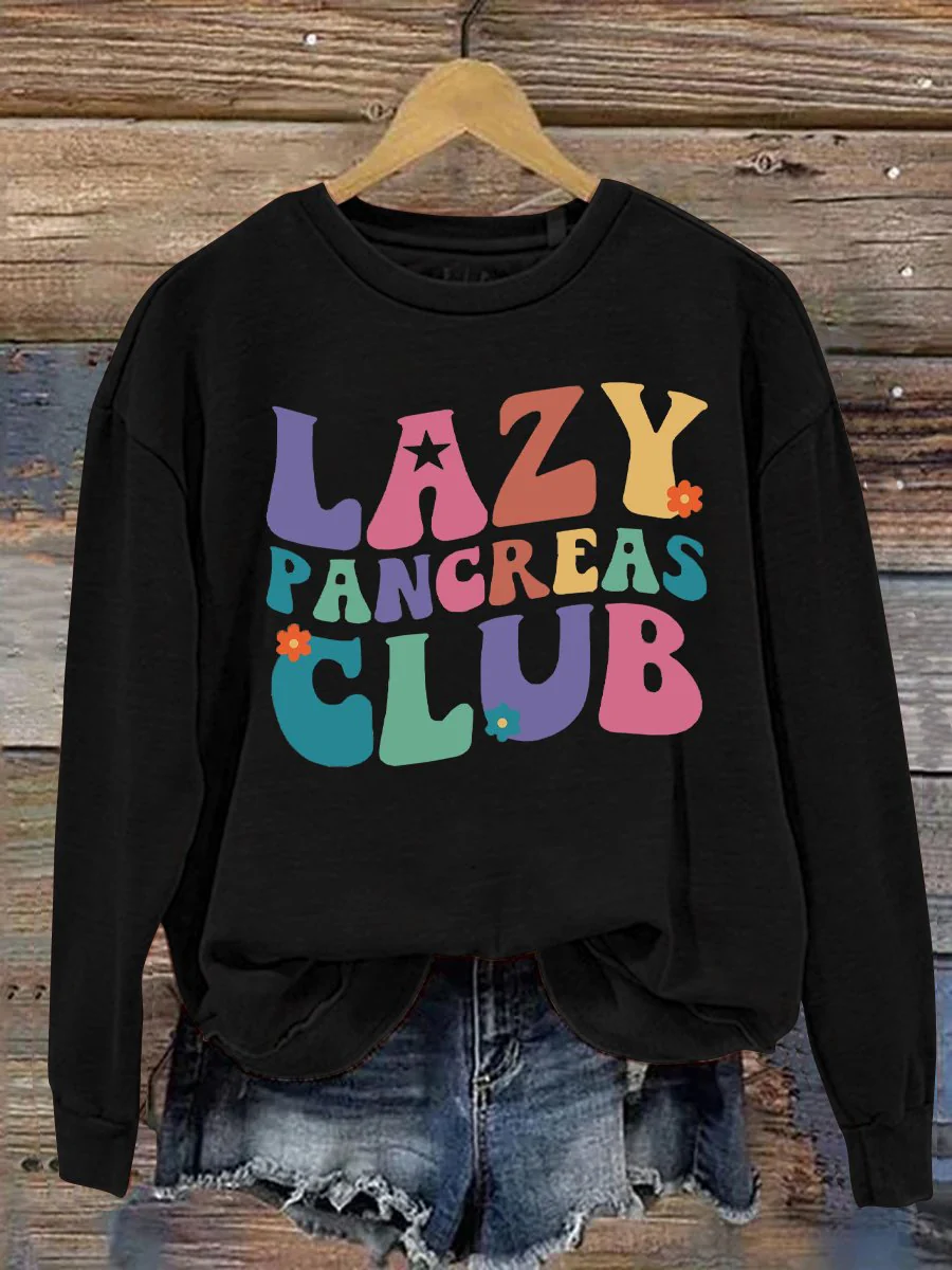 Women's Casual Diabetes Awareness Dead Pancreas Society Printed Long Sleeve Sweatshirt