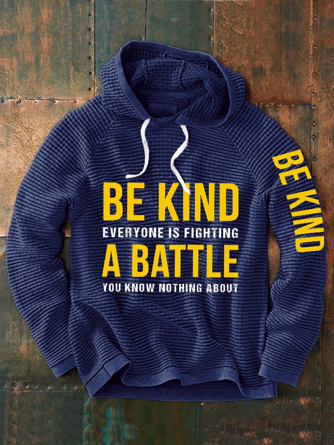 Men's Be Kind Everyone Is Fighting A Battle You Know Nothing About Print Waffle Hoodie