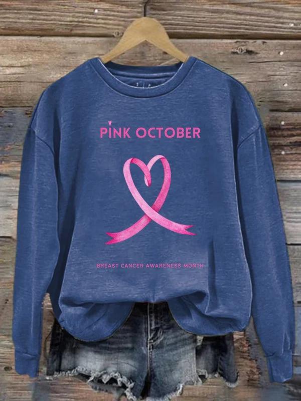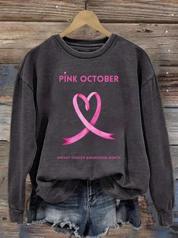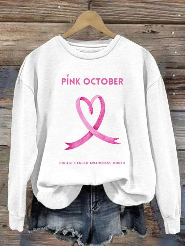 Women's Pink October Breast Cancer Awareness Month Print Pattern Casual Sweatshirt