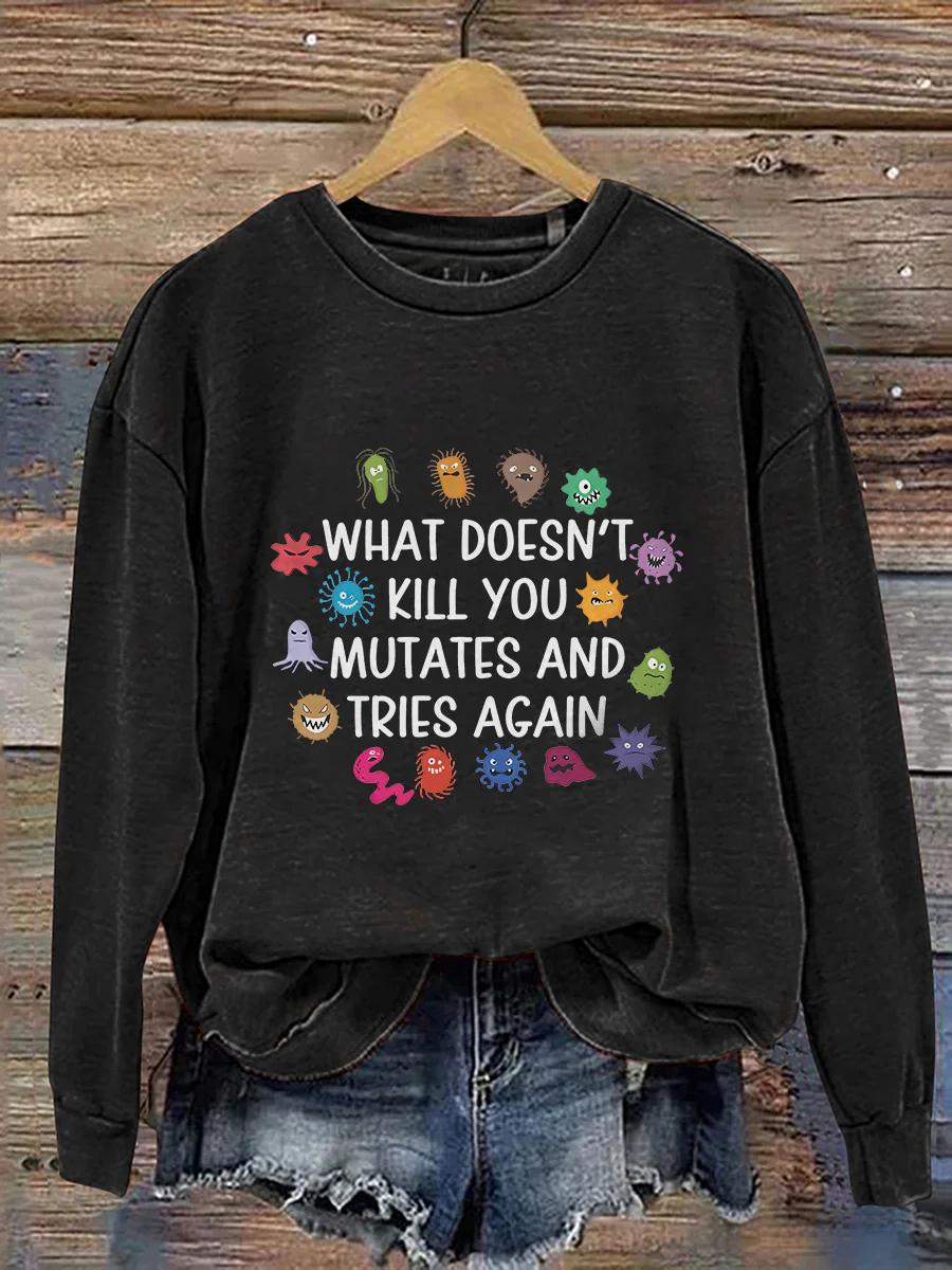 Funny Virus What Doesn't Kill You Mutates And Tries Again Science Casual Print Sweatshirt