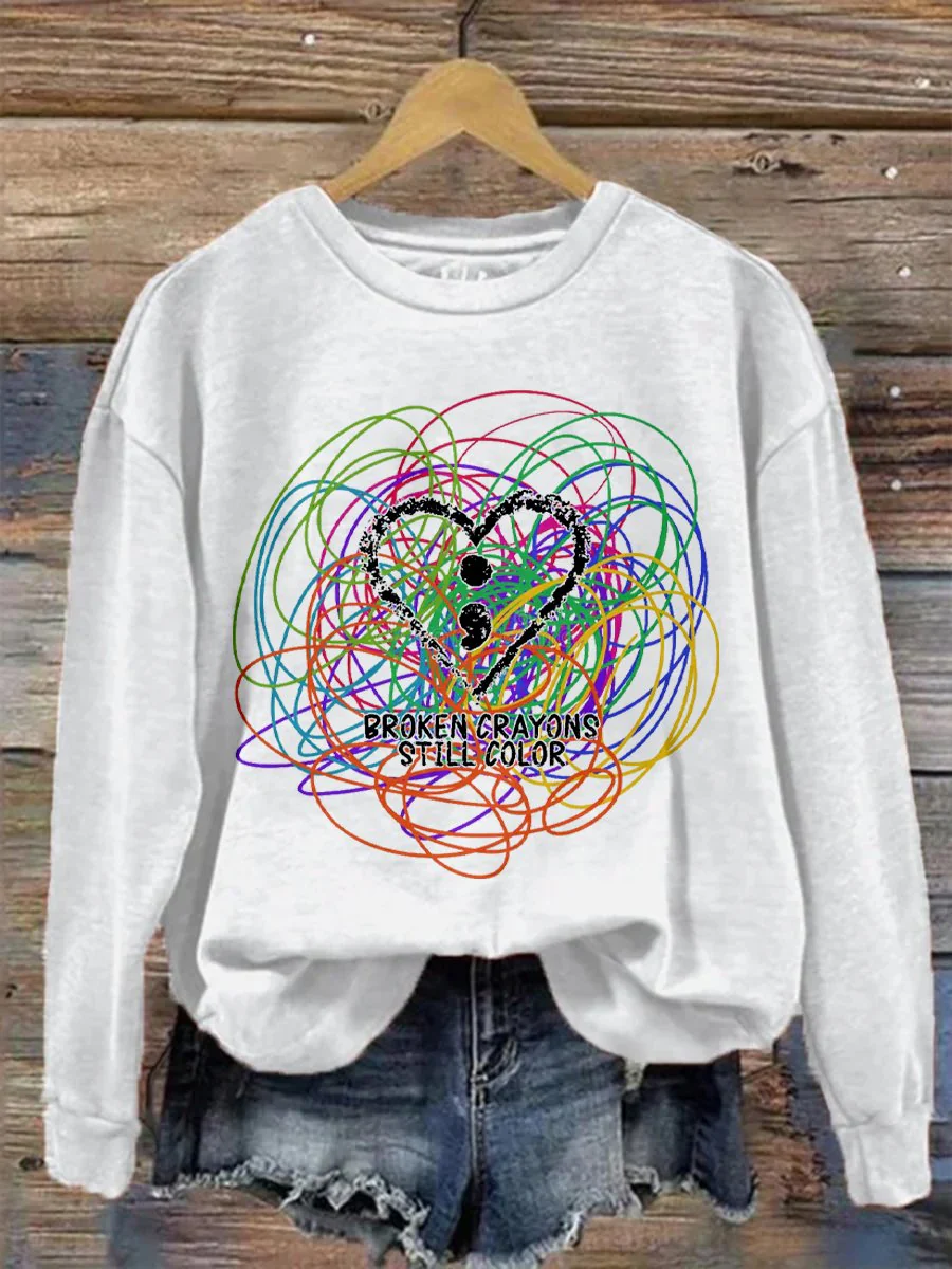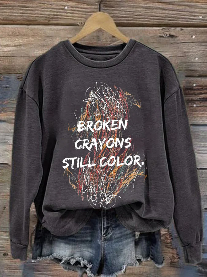 Women's Broken Crayons Still Color Printed Long Sleeve Sweatshirt