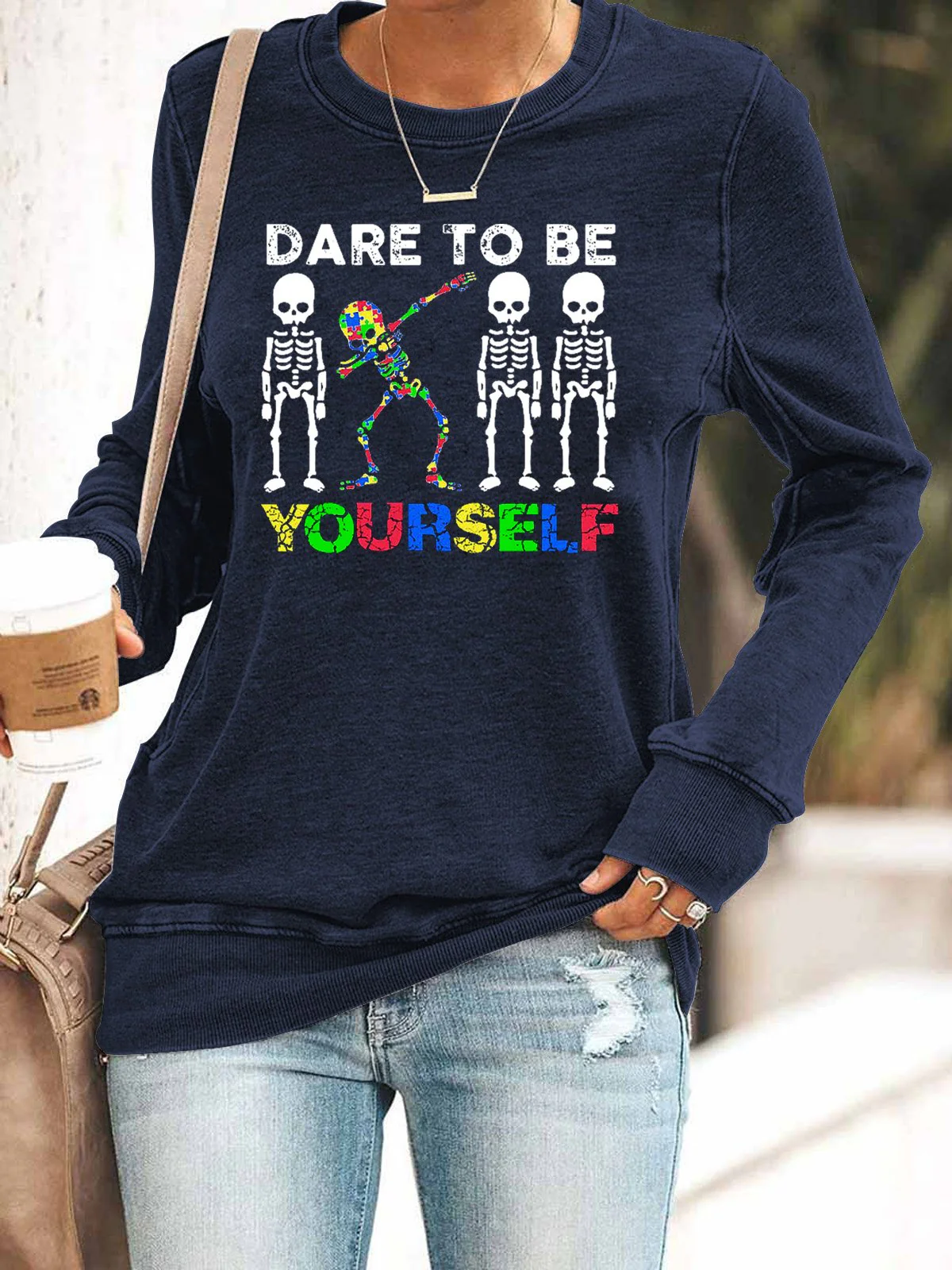 "Dare To Be Yourself" Autism Awareness Graphic Women's Casual Sweatshirt