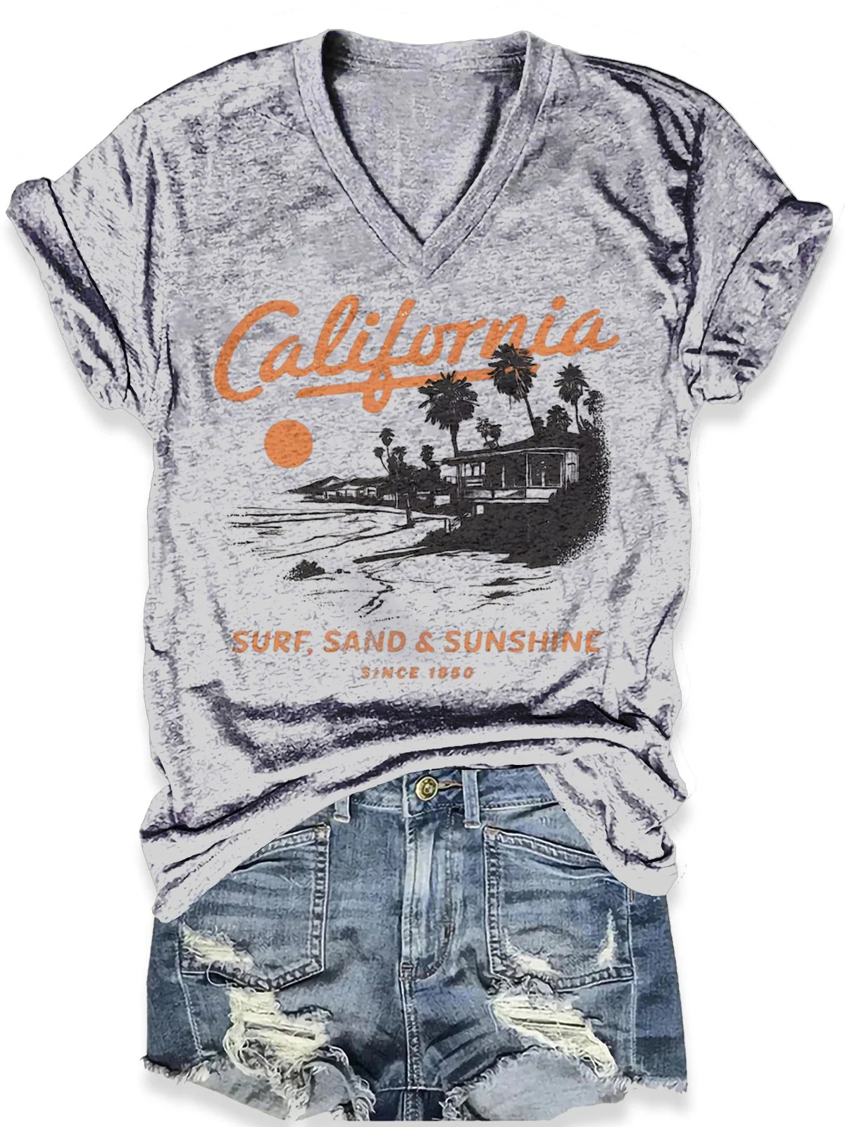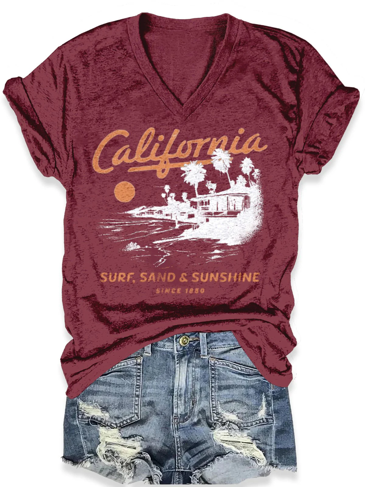 • California Surf Sand Sunshine Vacation Art Print Casual T-shirt