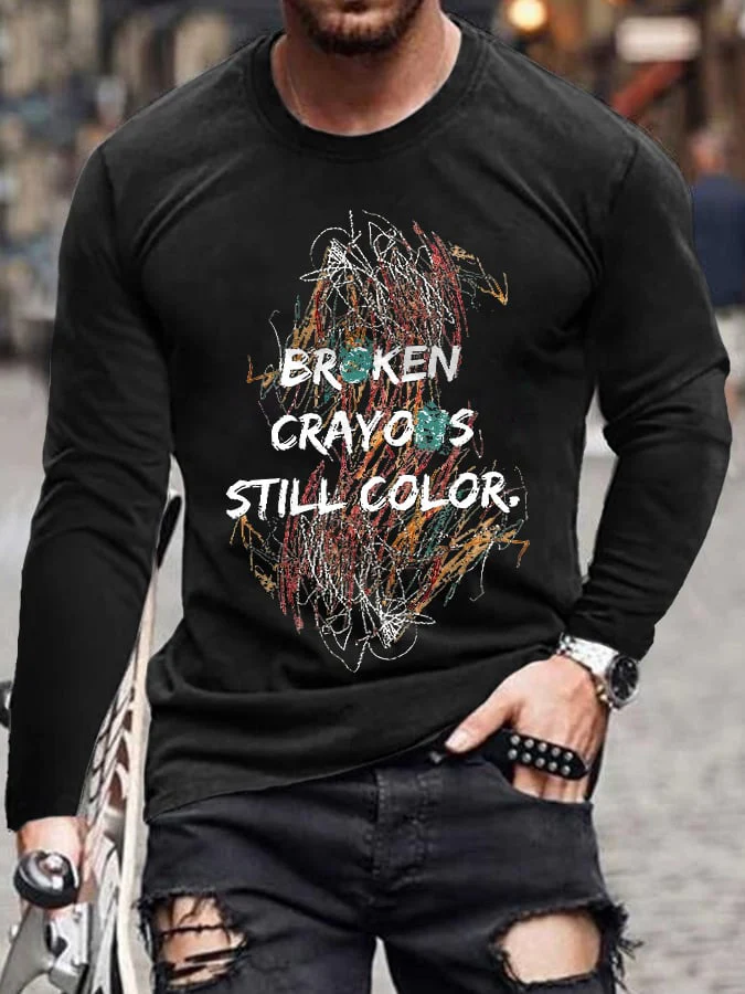 • Retro Broken Crayons Still Color Print T-Shirt