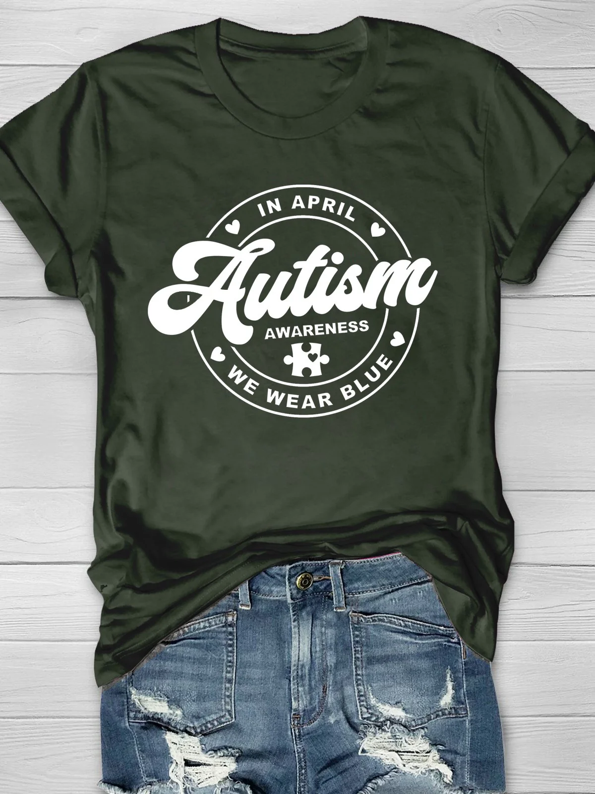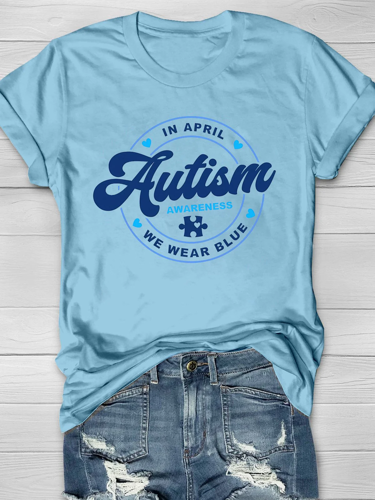 • Wear Blue for Autism Awareness Printing T-shirt