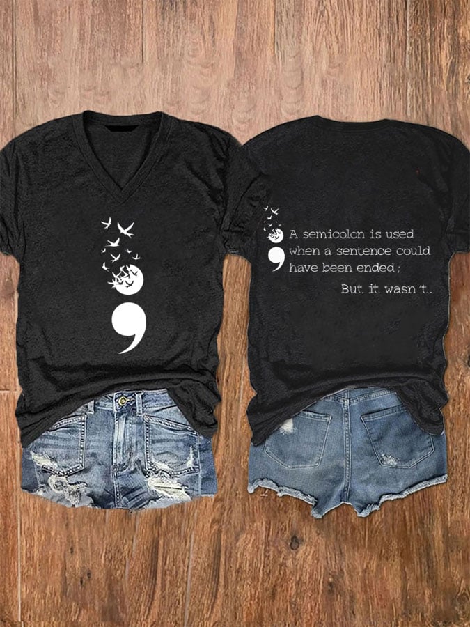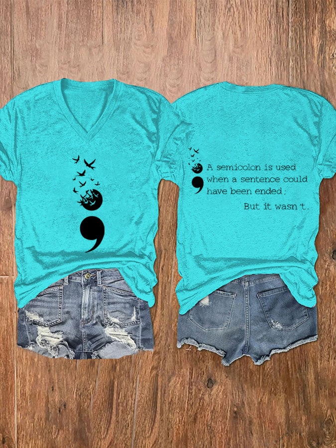 • Women's A Semicolon Is Used When A Sentence Could Have Been Ended,But It Wasn't Suicide Prevention Awareness V Neck T-Shirt