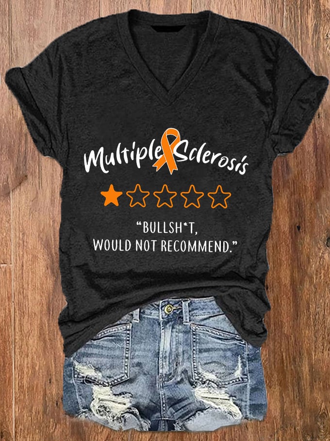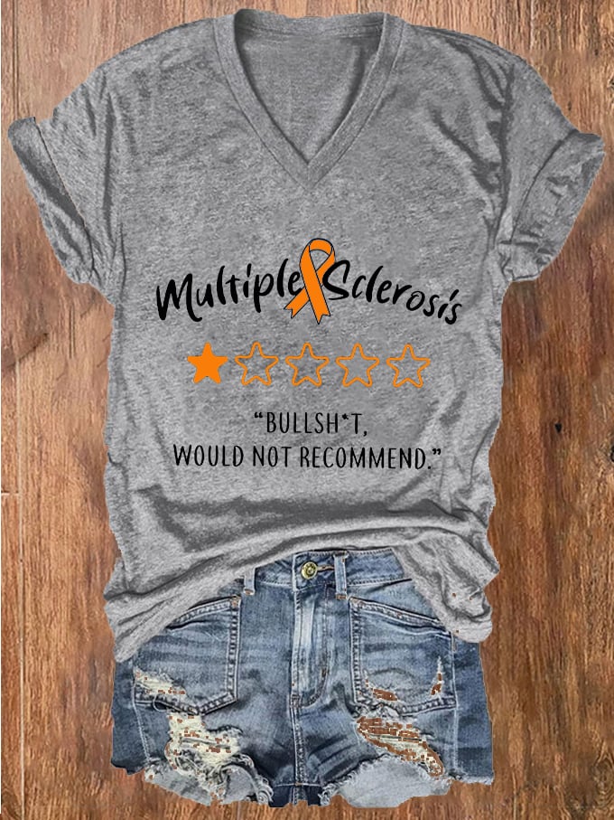 • Women's Bullsh*t Would Not Recomend M.S Awareness Printed V-Neck T-Shirt