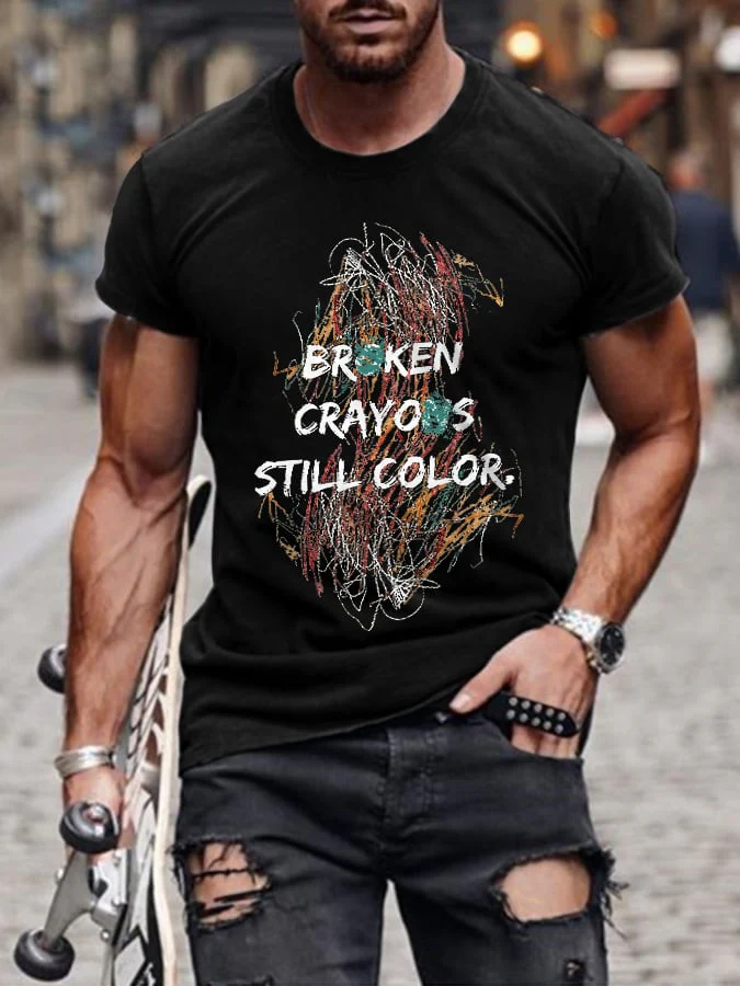 Men's Broken Crayons Still Color Print Short Sleeve T-Shirt