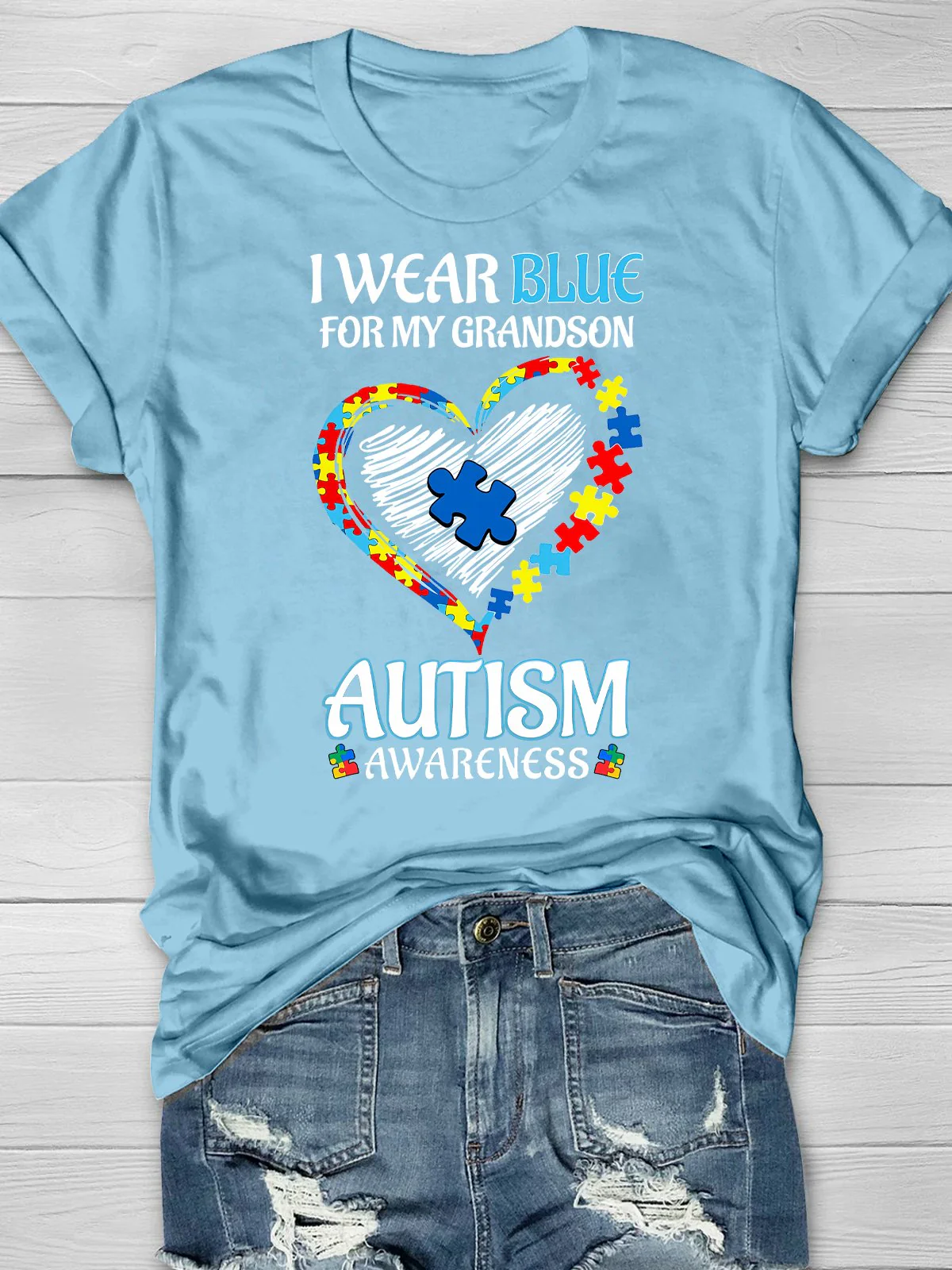 Wear Blue Autism Awareness Word Printing T-shirt
