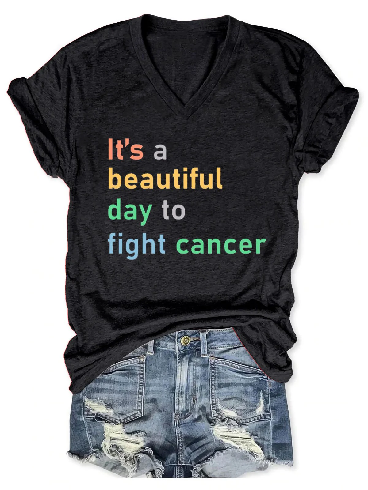 Women's It's A Beautiful Day To Fight cancer Print Casual T-shirt