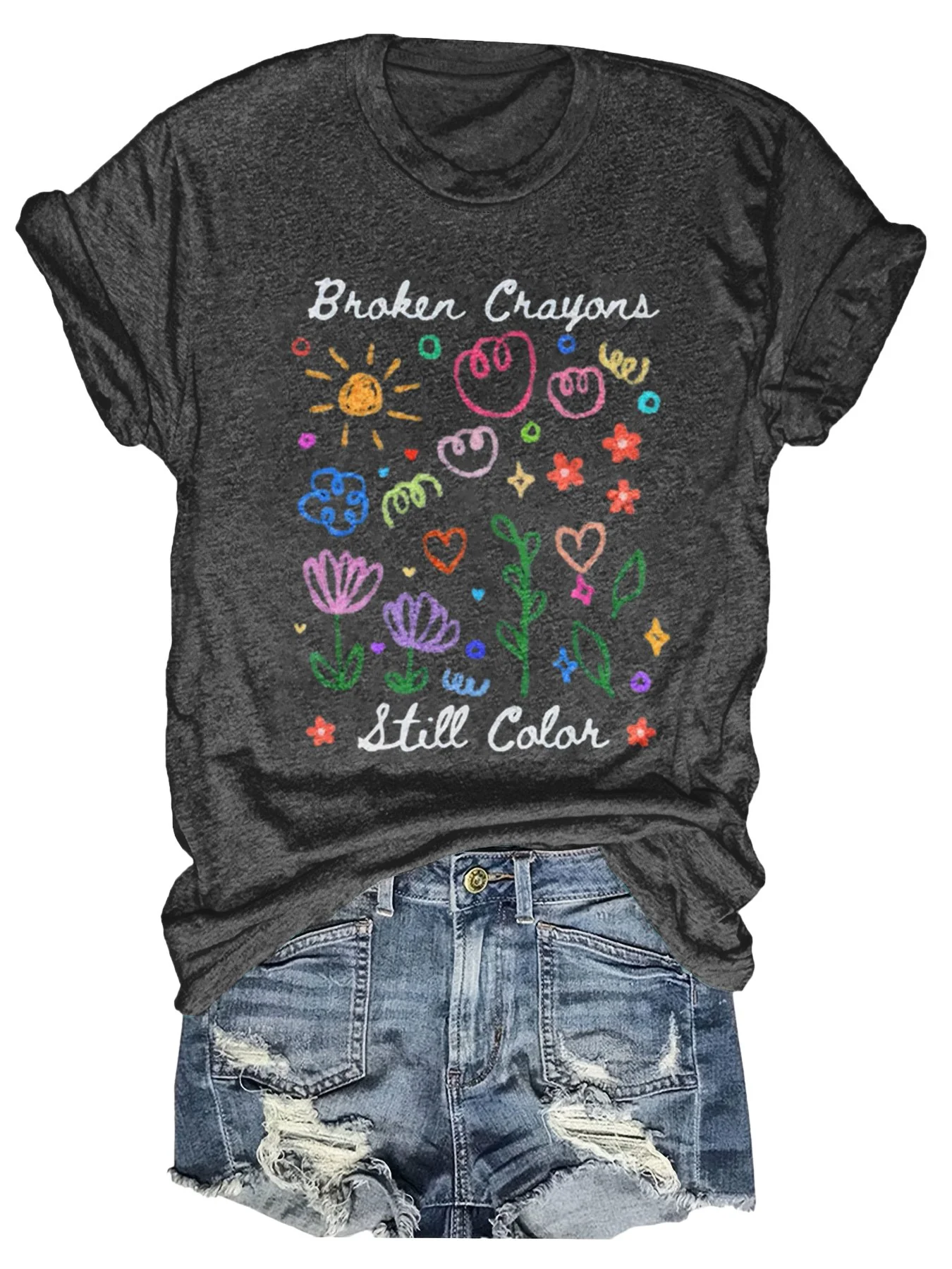 Broken Crayons Still Color Print Casual T-shirt
