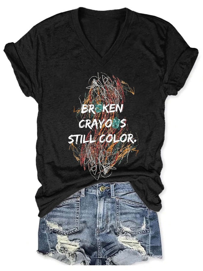 V-neck Retro Broken Crayons Still Color Print T-Shirt