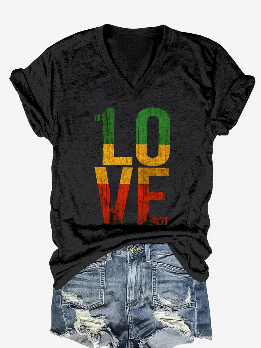 Retro Love Art Print Casual T-shirt
