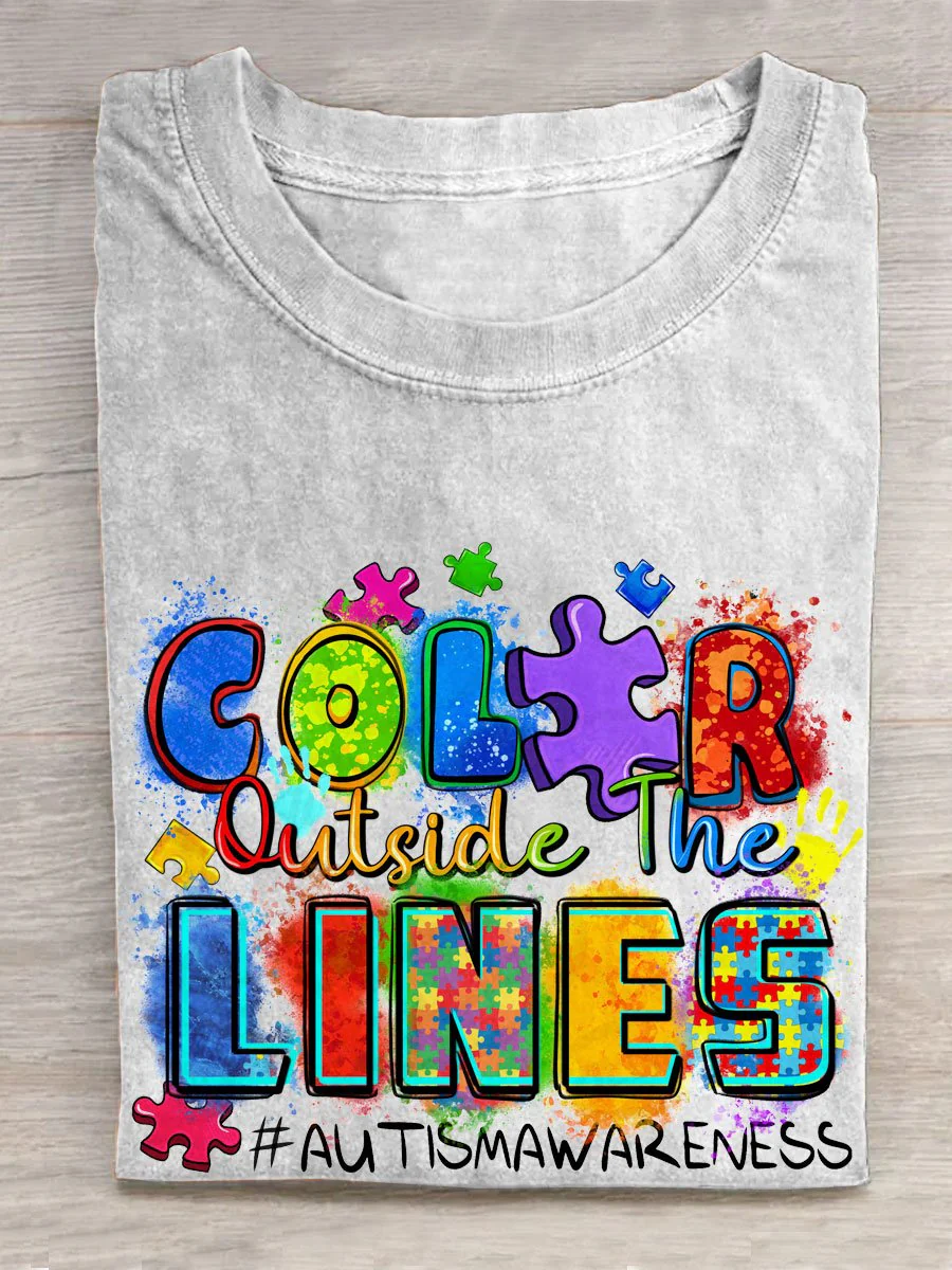 Women's Autism Acceptance Awareness Printed Short Sleeve Casual T-Shirt