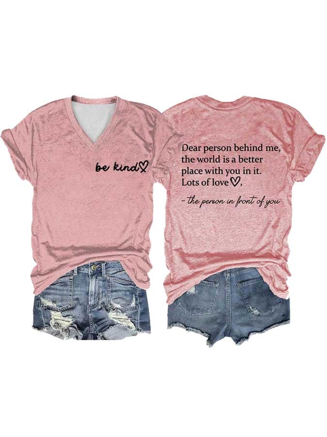 Women's Be Kind The World Is A Better Place With You In It Print V-neck Short Sleeve T-shirt