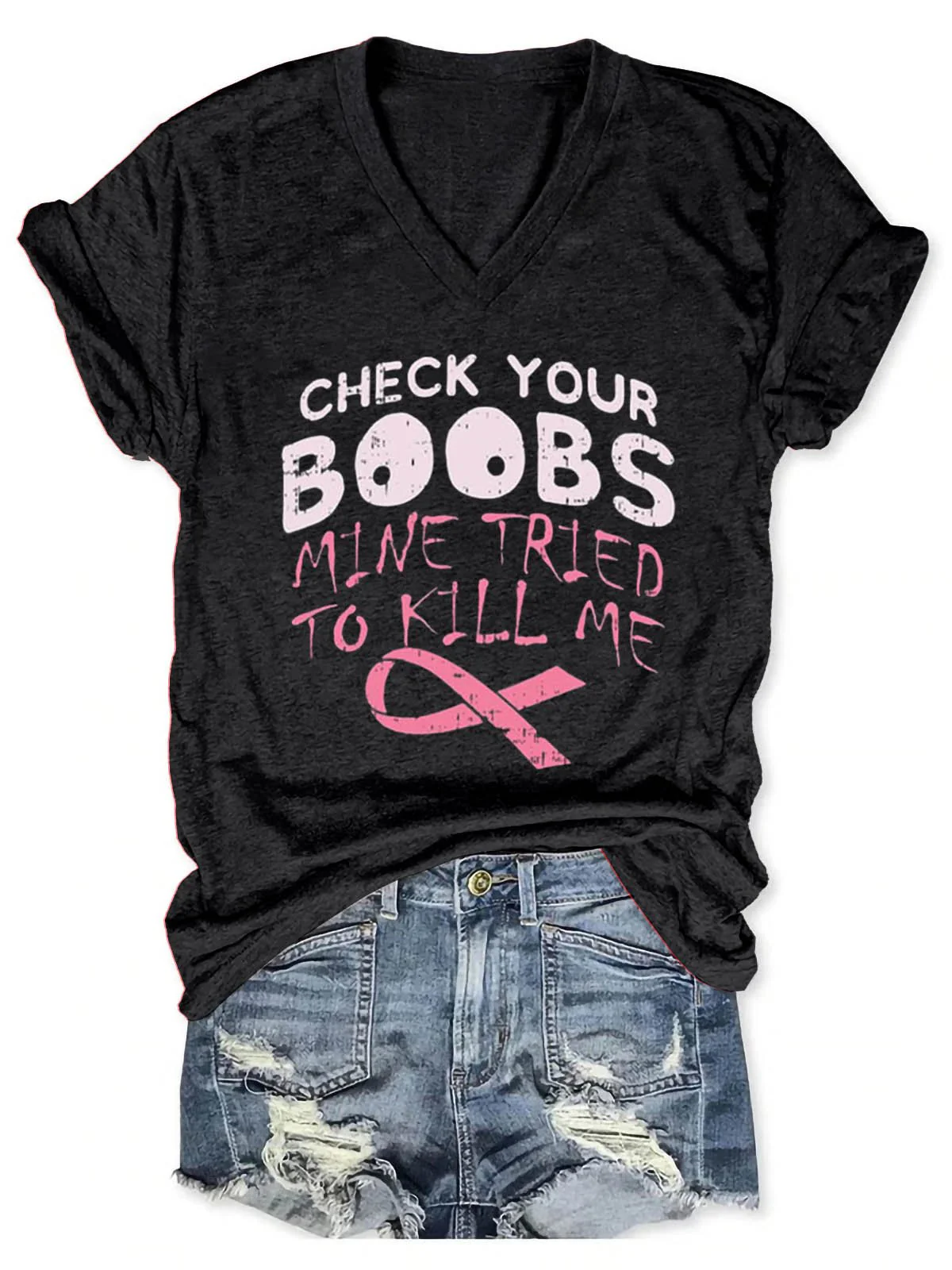 Check Your Boobs Breast Cancer Awareness Art Casual T-shirt