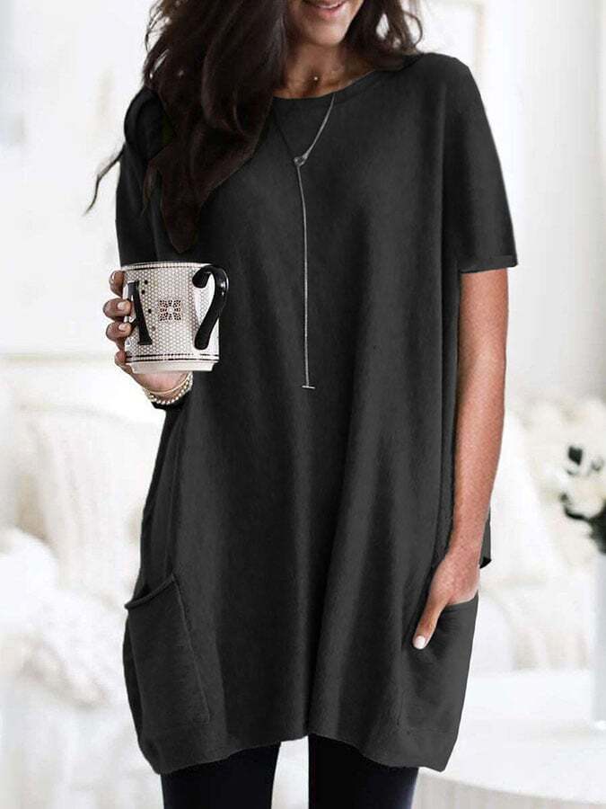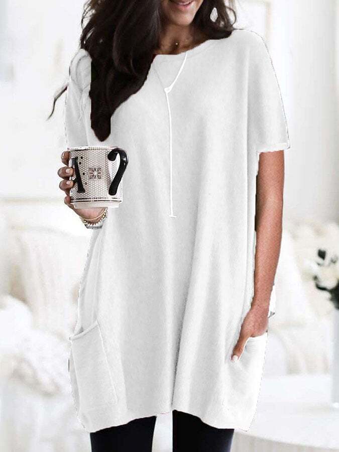 Solid Color Short Sleeve Casual Pocket T-Shirt