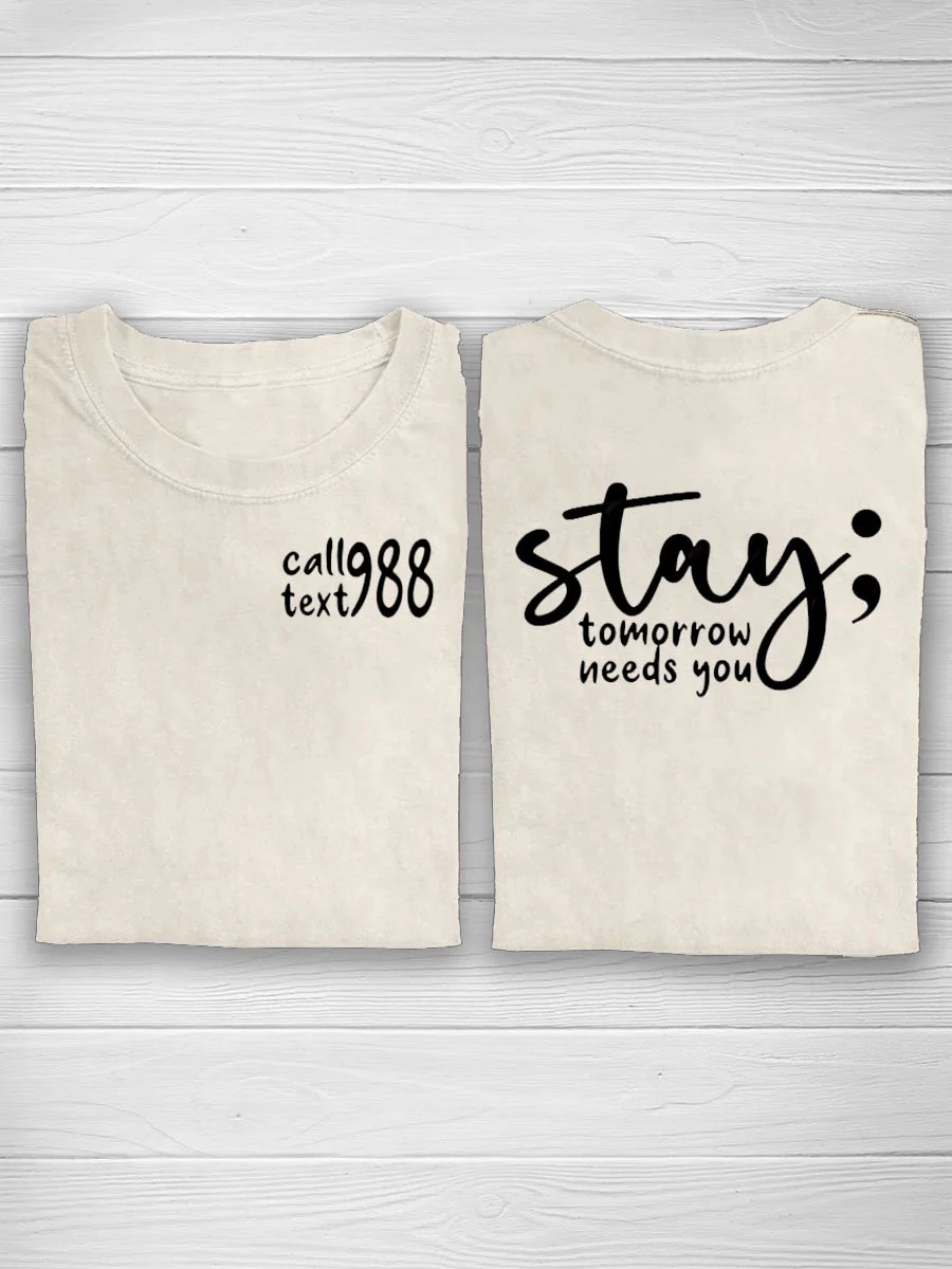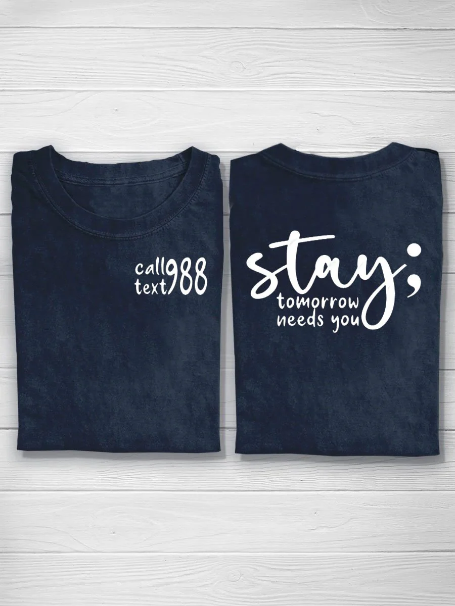 Suicide Prevention Awareness Semicolon Stay Call 988 Print T-shirt