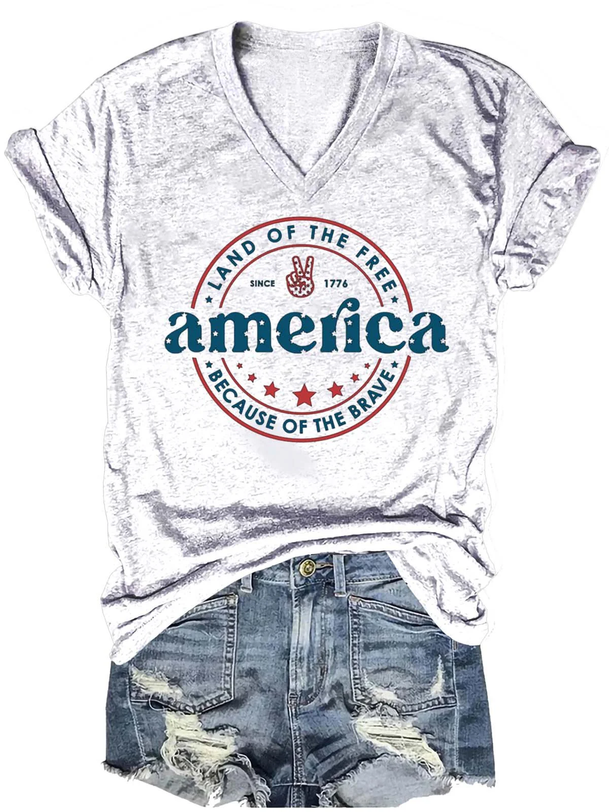Independence Day America Land Of The Free Because Of The Brave Letter Art Print Casual T-shirt