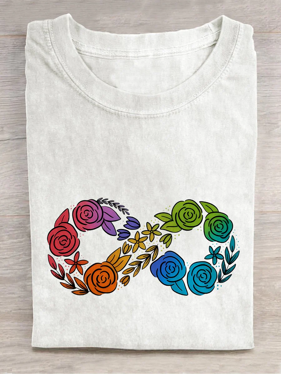 Neurodiversity Autism Floral Autism Awareness Casual Print T-shirt